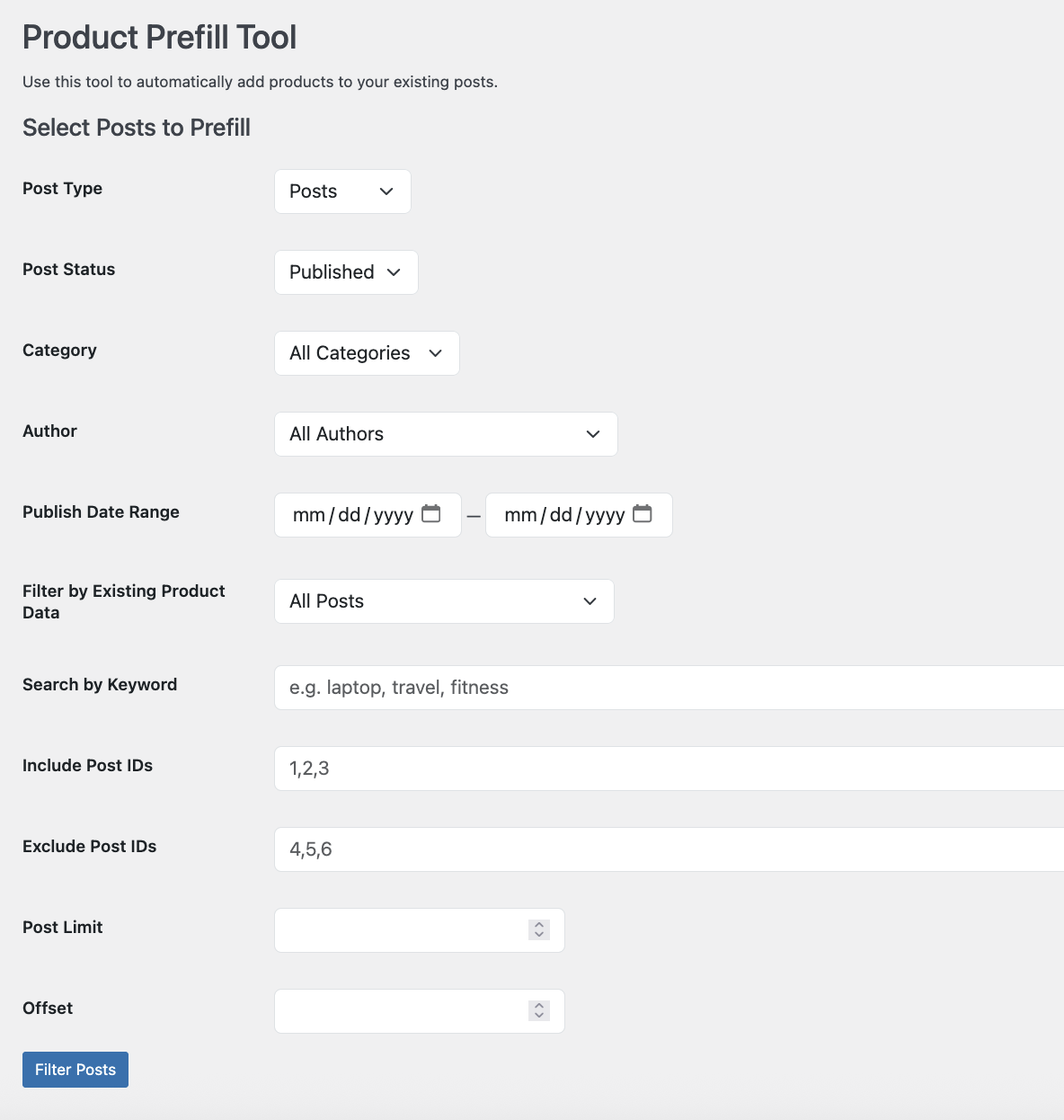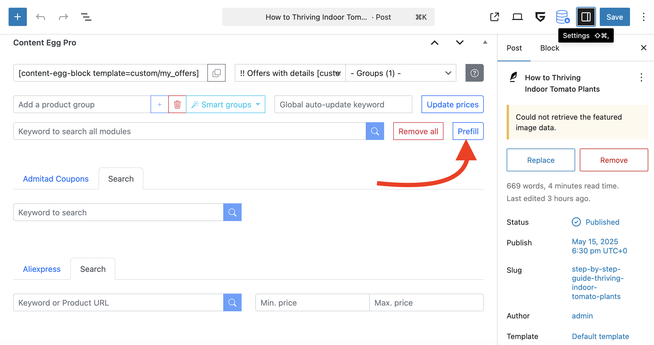 The Prefill Tool allows you to automatically add Content Egg products to existing posts.